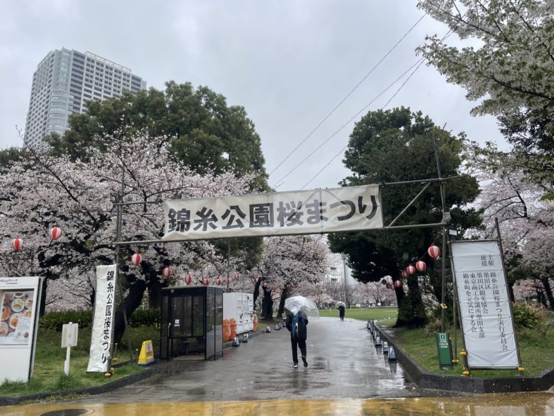 雨ニモマケズ……、放送前にスタジオ近くの錦糸公園にお花見に行ってきました!