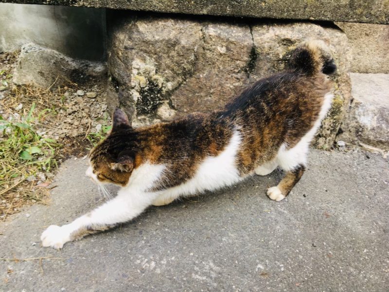 これぞまさに見事なヨガの「猫のポーズ!!!」