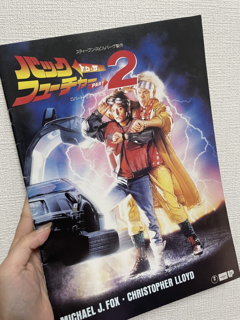 1989年公開のBTTFパート2。私はリアルタイム世代ではありませんが、青春時代に出会ってあまりの面白さに、映画グッズショップで見つけたパンフレットを購入したのでした……。