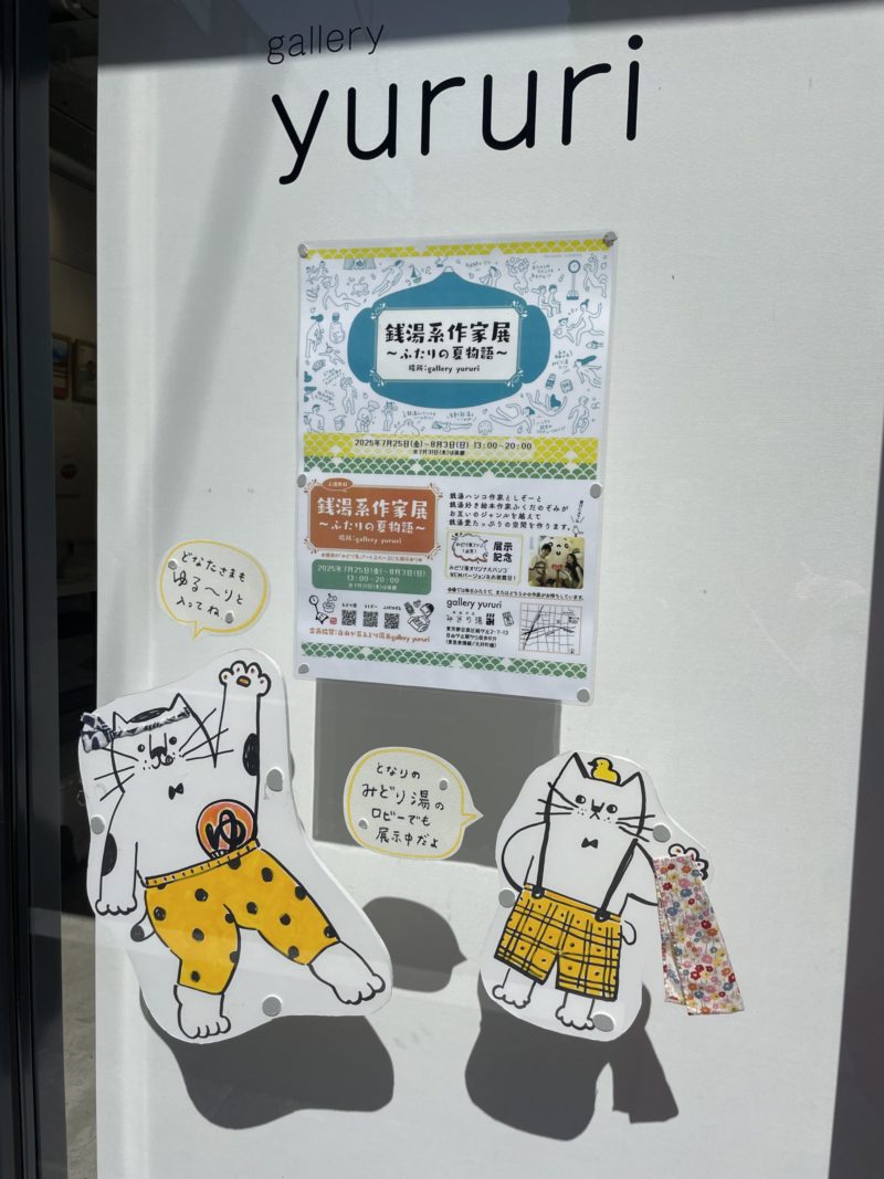 併設の「ギャラリーyururi」では8/3(日)まで「銭湯系作家展~ふたりの夏物語」を開催中。