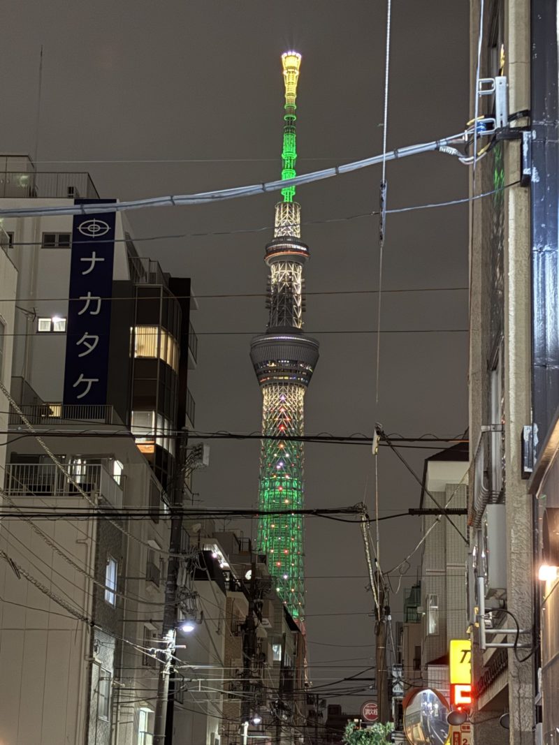 帰り道に見たスカイツリーもクリスマスバージョンになっていました(^^)