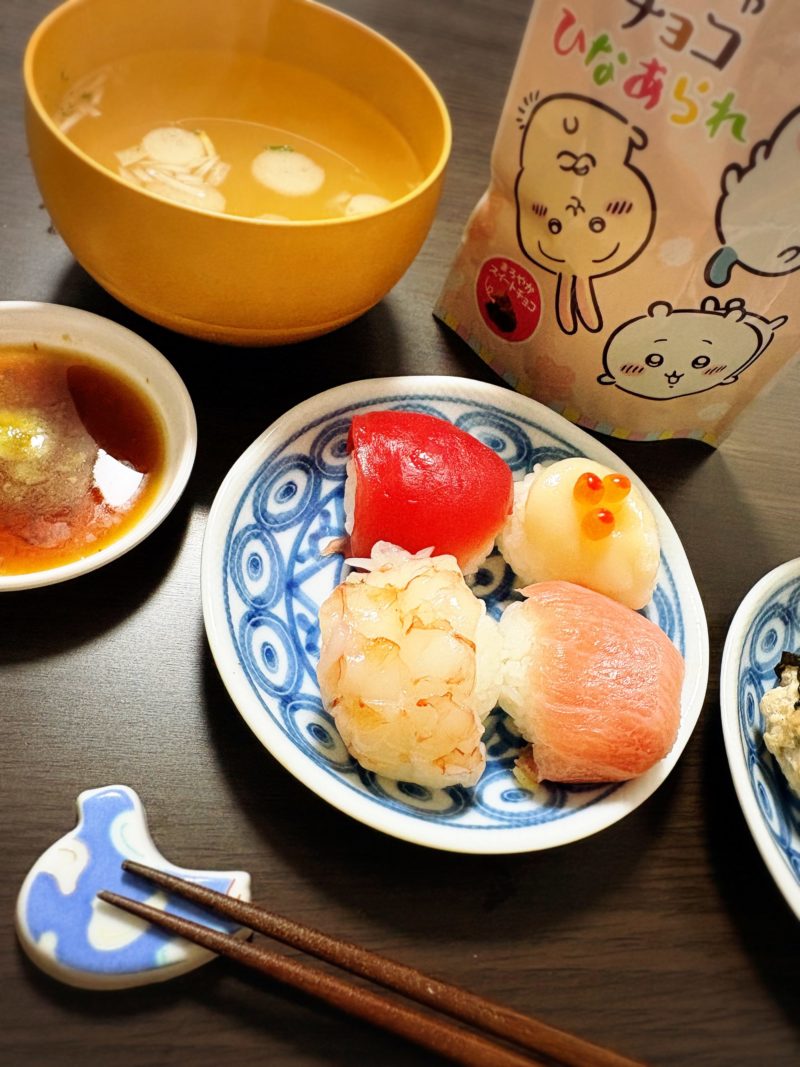 いただいたメッセージを参考にさせていただき、夜ご飯はてまり寿司とはまぐりのお吸い物、ひなあられも♪