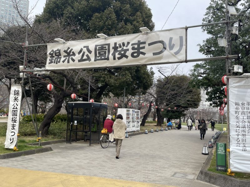 スタジオ近く、錦糸公園に行ってみたところ「桜まつり」の準備は整っていましたが、開花はまだ…。
