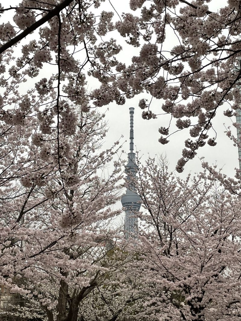 スカイツリー×桜が一緒に見れる!夜桜もおすすめです。