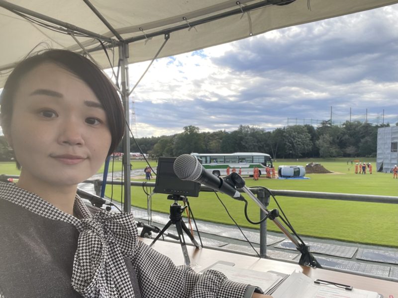 私はこちらの本部テントからアナウンス業務を行っていました!