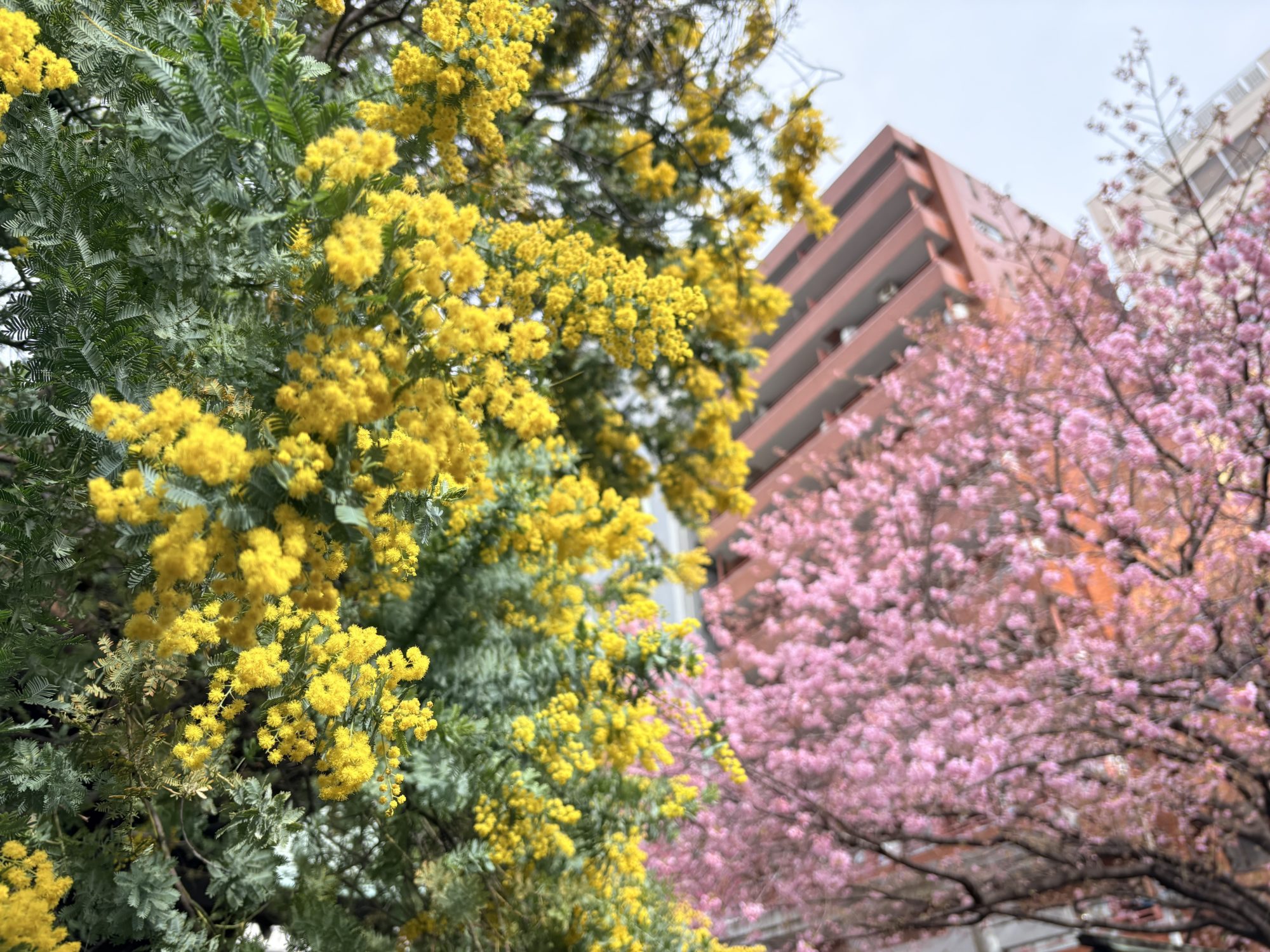 通りかかると多くの人で賑わっていたので、何かな?と思って境内に入ってみると、私が訪れた2月末のこの日は河津桜とミモザの花が満開!