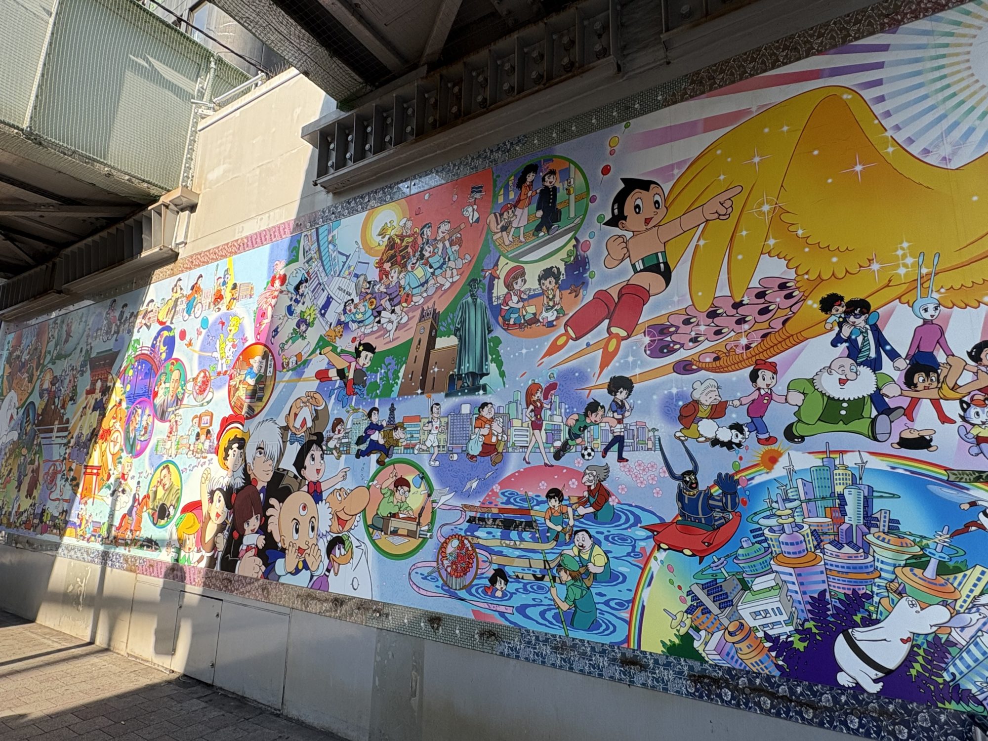 駅を出てすぐのところには手塚治虫作品のキャラクターが描かれた素敵な壁画があります。