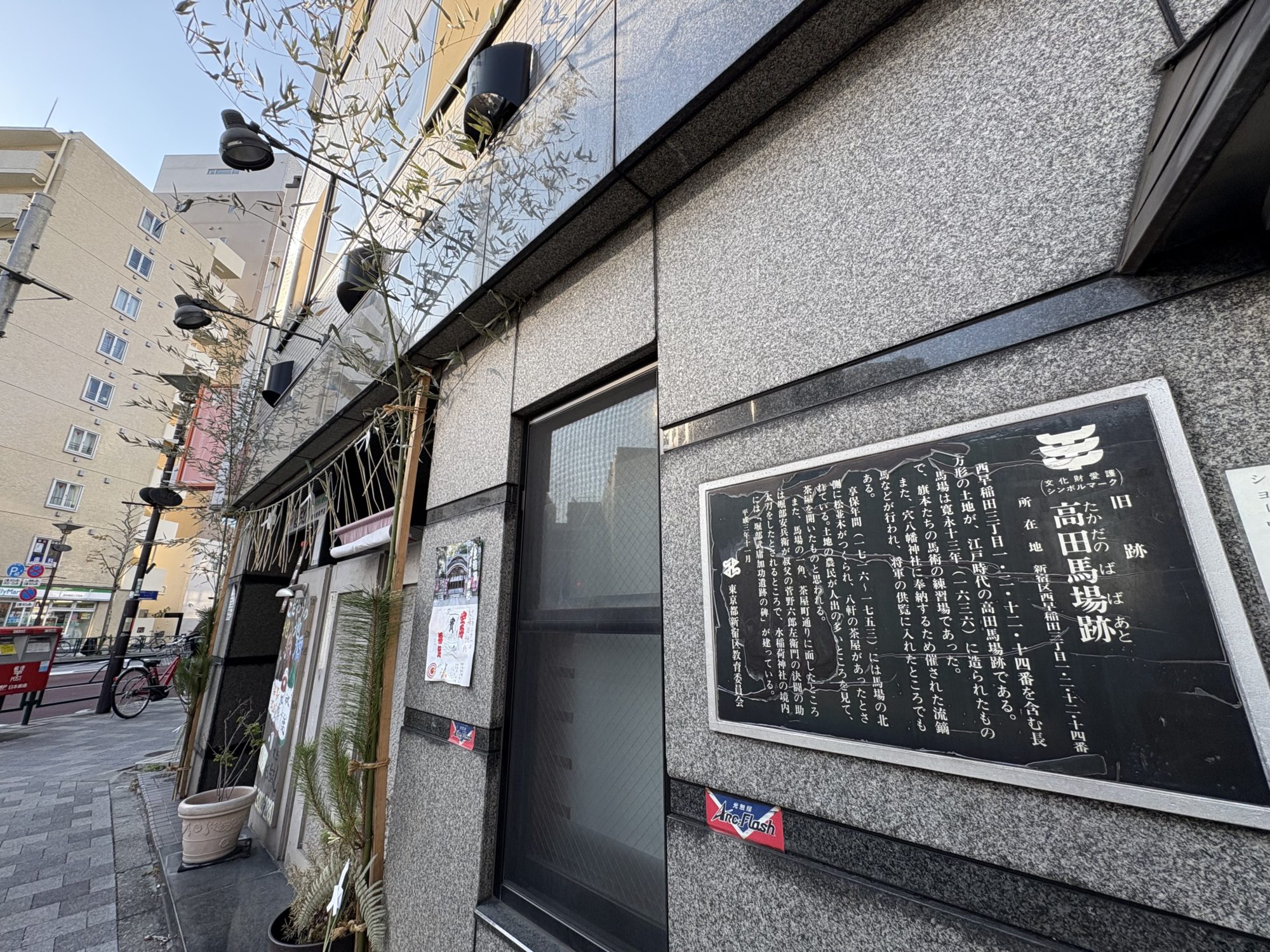 高田馬場駅から早稲田通りを西早稲田方面に向かって歩いて15分ほど、旧跡「高田馬場跡」を見つけました。